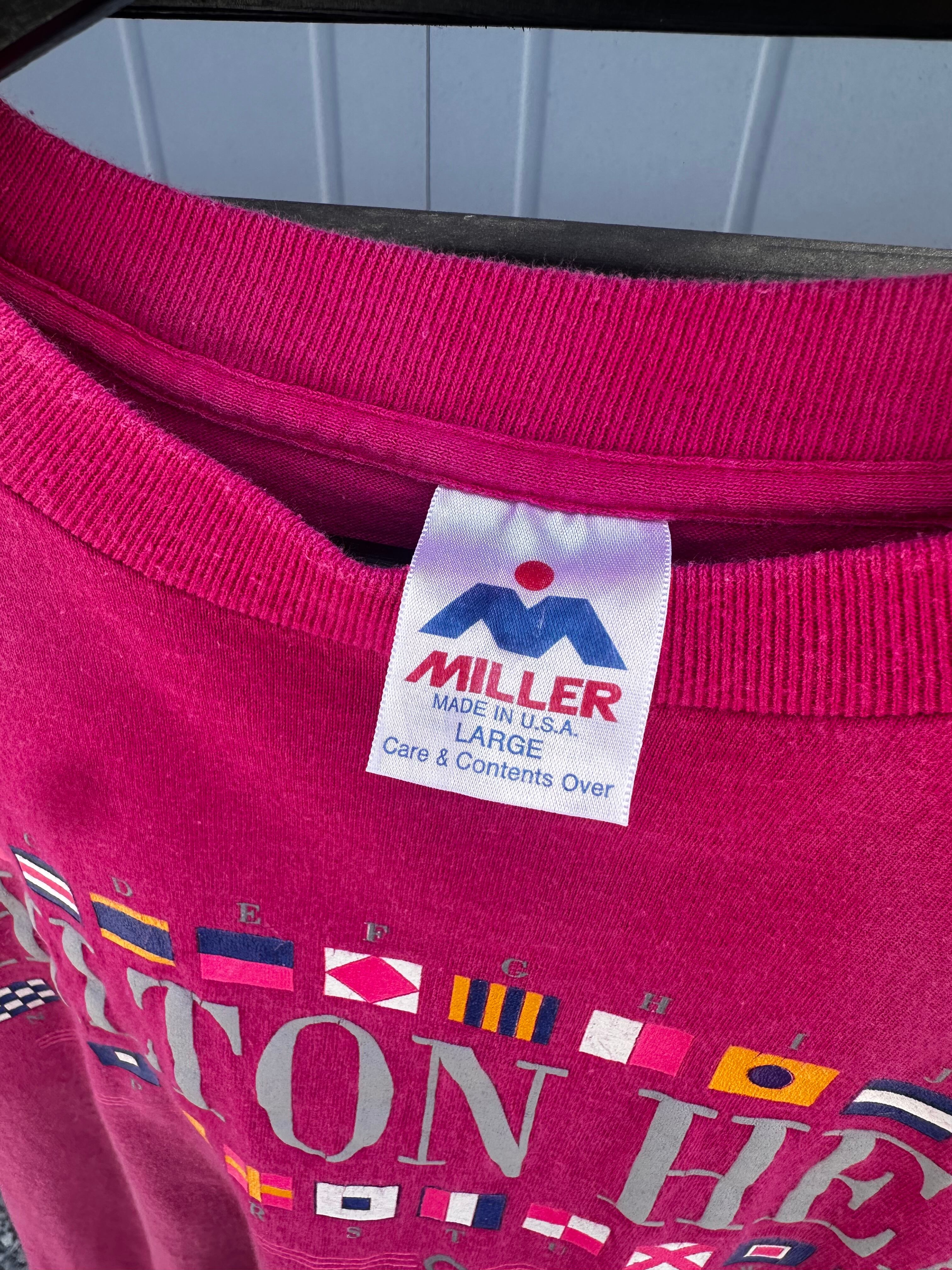 タイムレスな魅力を持つ90’s MILLER HILTON HEAD USA製Lsizeの古着は、ヴィンテージファッションの真髄を感じさせる一品です。90年代の雰囲気をしっかりと感じさせながらも、現代のスタイルにも融和するシルエットが特徴です。経年変化による風合いのある生地は、長年の使用により柔らかくなり、体に自然にフィットします。特に、バックのロゴ刺繍や前面のデザインは、シンプルでありながらも存在感を放ち、コーディネートにアクセントを加えることができます。アクティブな日常からカジュアルな週末のお出かけまで、幅広く活躍するアイテムです。
